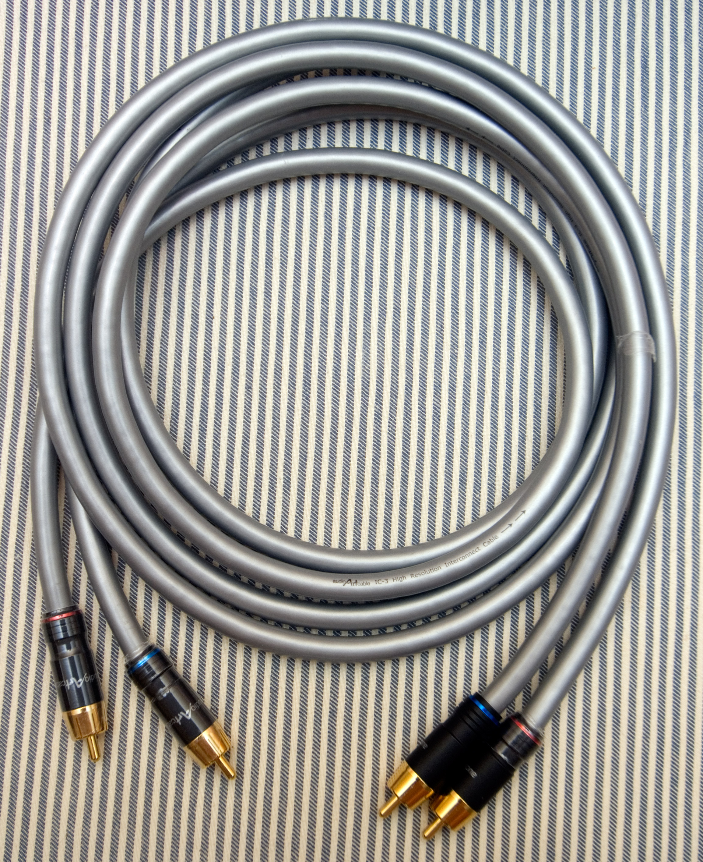 Features include silver-coated OFC stranded copper conductors insulated in an ultra-low loss foamed Polyethylene dielectric, which provides very low capacitance. The cable is also 100% shielded with aluminum mylar for complete immunity to noise. The IC-3 is DEAD quiet! Each cable is carefully terminated with our custom Audio Art RCA plugs, gold plated and machined from solid brass.